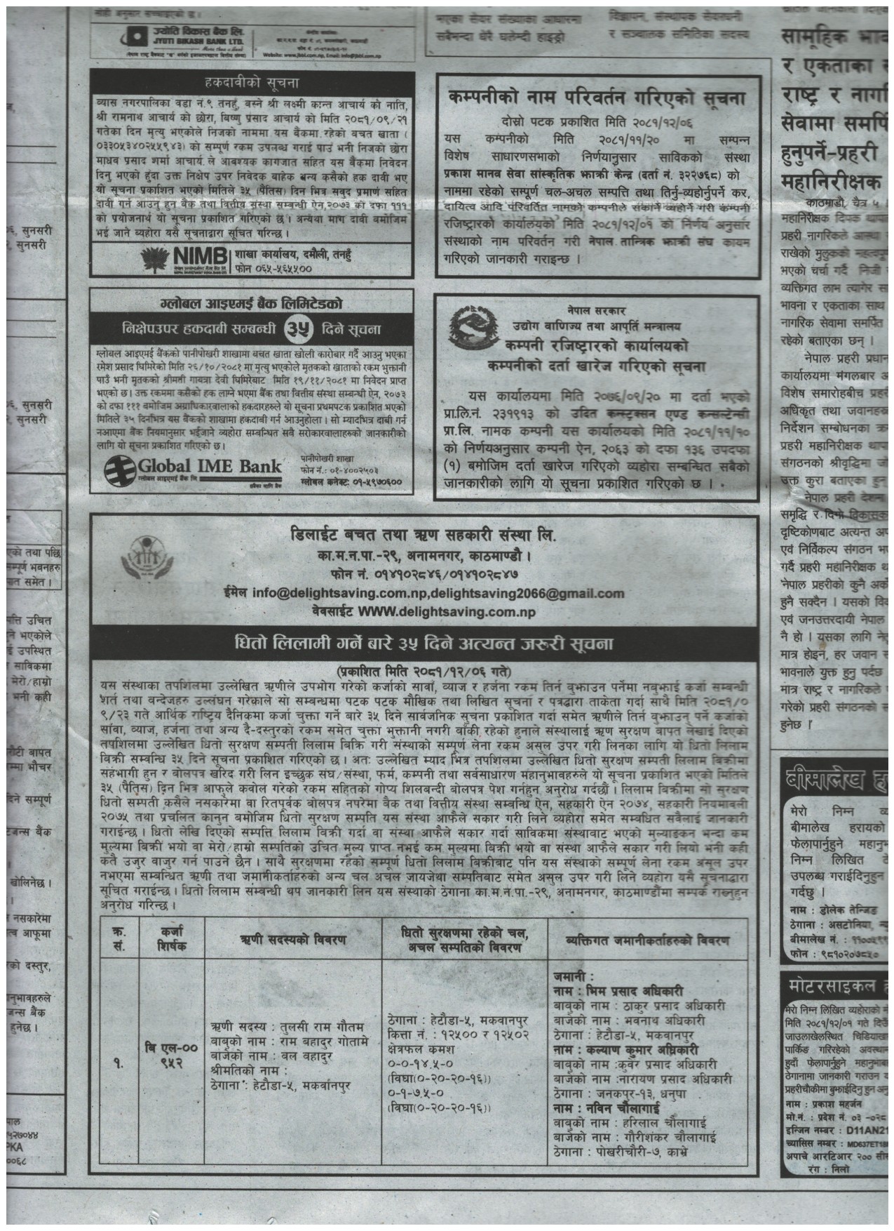 धितो लिलामी सम्बन्धी ३५ दिने जरुरी सुचना