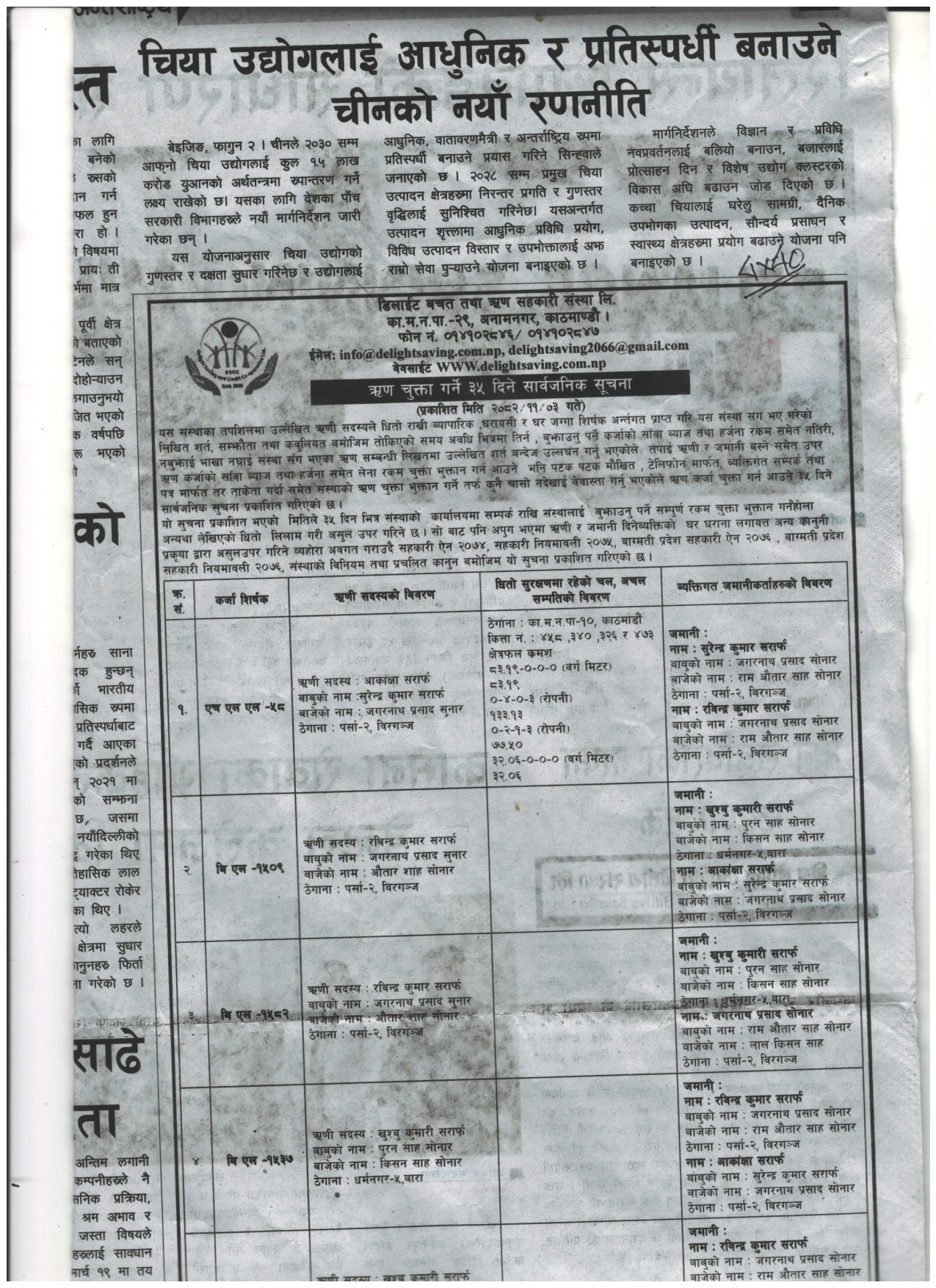 public notic. ऋणिलाई सार्वजनिक सचना Additional Documents S.N Title View Download 1 lilami notice View item Download